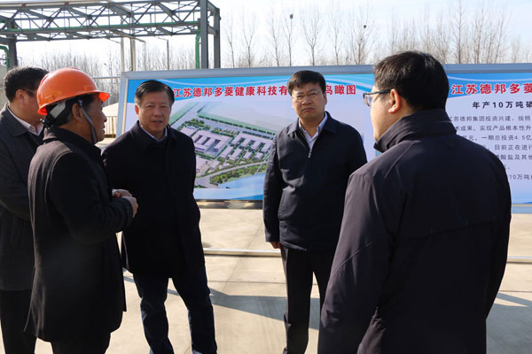 3月8日上午,市委常委、市長方偉攜市委秘書長韓尚富、市發改委、市工信局、市自然資源和規劃局、市生態環境局主要負責人及東海縣領導相關領導一行蒞臨江蘇德邦多菱健康科技有限公司廠區,督查市級重點項目推進工作,并與集團公司董事長趙祥海進行親切交談。在聽取集團公司董事長關于產業布局、項目建設和經營效益等相關情況匯報后,方偉勉勵企業要堅定發展信心、樹立高遠志向,大力推進創業創新,頑強拼搏,不懈努力,推動企業做大做強,力爭項目早日建成投產,為地方經濟發展再做新貢獻。他強調,東海縣相關部門要進一步加大幫扶企業力度,抓緊落實企業相關手續的辦理,推動有關項目早日建成投入運行。同時他也表示,將抓緊推動德邦老廠區地塊的掛牌出讓工作,為德邦的整體搬遷項目建設提供支持。