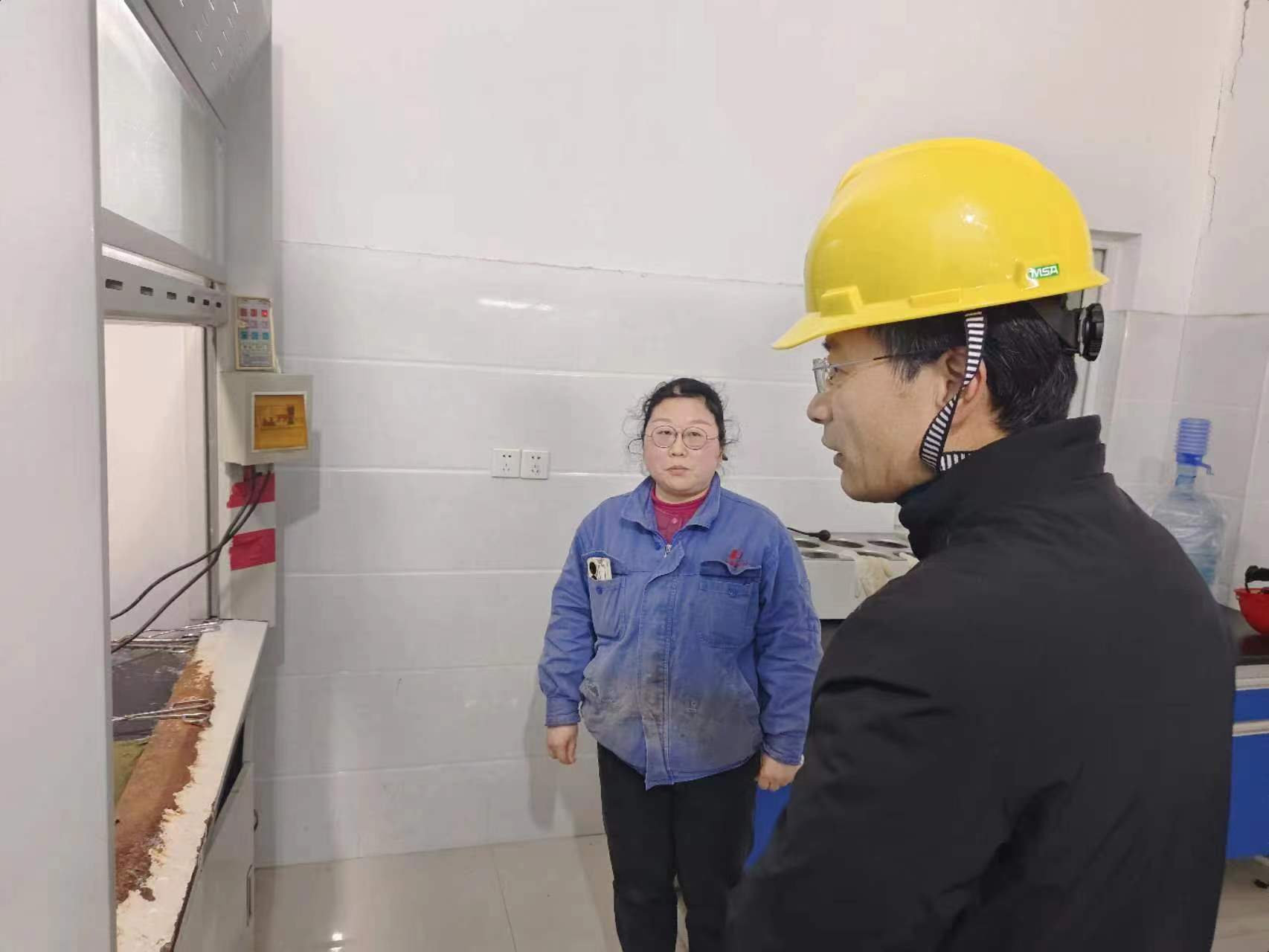 1月24日大年初三下午,淮南市市長張志強在市政府秘書長戴宜斌等同志的陪同下輕車簡從,在未事前通知企業的情況下,來到安徽德邦公司進行視察,并到中控化驗室看望了當班員工。